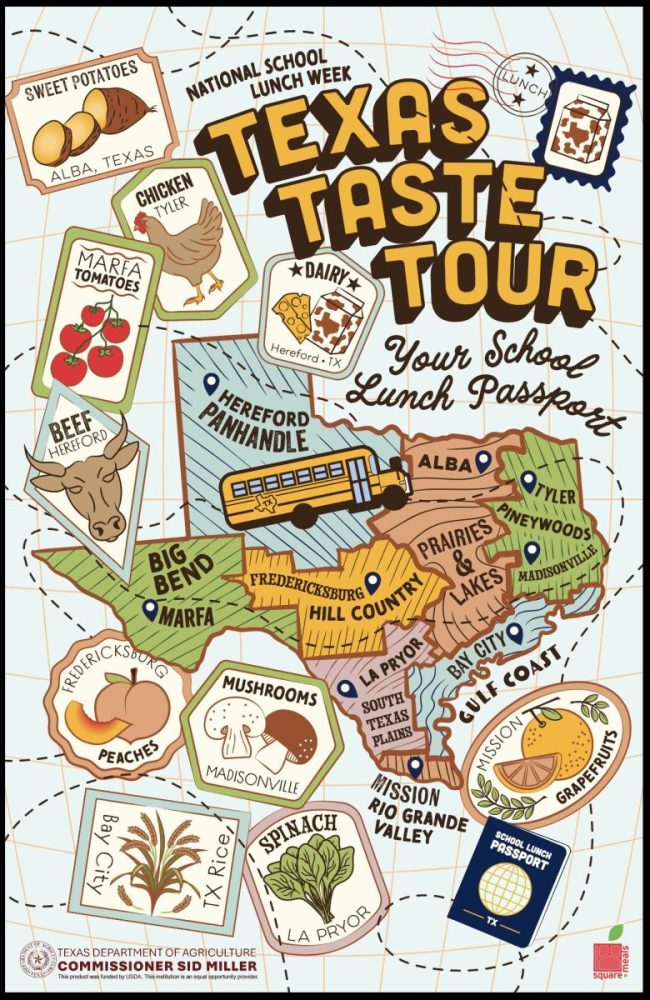 The Texas Department of Agriculture (TDA) partners with more than 8,000 schools to provide 3 million lunches every school day. Promoting events like National School Lunch Week reminds children to access balanced meals in the cafeteria. These celebrations also highlight the hard work and dedication of the school nutrition professionals serving the meals. TDA and Commissioner Miller encourage all Texans to join school nutrition professionals in celebrating National School Lunch Week with the theme Texas Taste Tour: Your School Lunch Passport. To learn more, visit www.SquareMeals.org/NSLW.