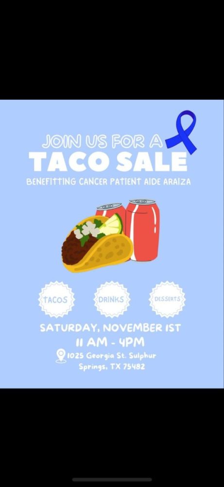 October 27, 2025 – Join friends and family on Saturday November 1st, 2025 for tacos and other mexican treats. Proceeds go to support a local cancer patient. Service starts at 11AM. Click here for the location.
