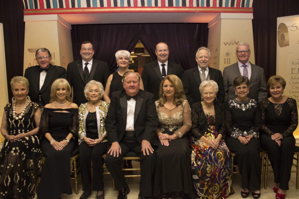 The Helms are photographed here at the 2018 Gala with past chairs of this annual event. Front row, left to right, are Barbara McKenzie, Rhonda Young, Mary Bonham, Charles Helm, Sharon Helm, Peggy Dietze, Sheila Tanton, and Donna Rudzik. Back row are Mickey McKenzie, Craig Roberts, Pam Sellers, Tom Sellers, Dr. Bill Dietze, and Arvis Tanton.