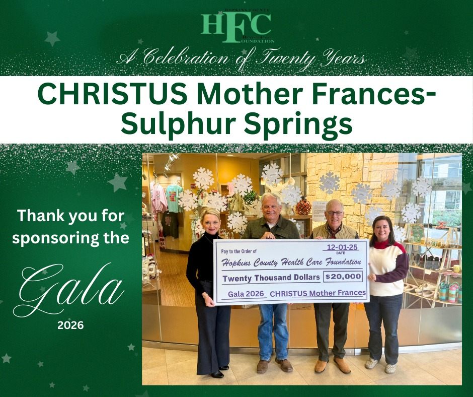 Photo 3: Thank you, CHRISTUS Mother Frances Hospital – Sulphur Springs, for sponsoring the 2026 Gala! Proceeds of this year’s Gala will help fund CMF-SS’s surgical services expansion. This will expand the surgical wing by 7,000 square feet, doubling the number of operating rooms and allowing for more people to receive life- changing care right here in Hopkins County.