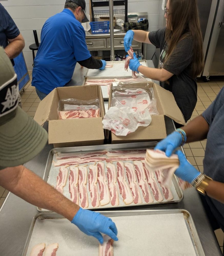February 20, 2026 – Kiwanis of Sulphur Springs was working hard Friday night, prepping meats for the Saturday Pancake Feed.
