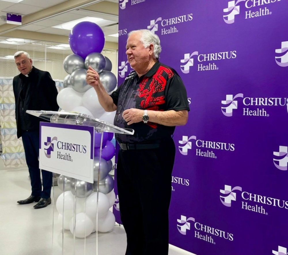 Honorary Spreading Our Wings Campaign Chair Charles Helm shares comments at the Blessing and Dedication of the new part of the CHRISTUS Mother Frances Hospital – Sulphur Springs. Charles and wife, Sharon, made the first gift toward the campaign and have often expressed their hope to see the hospital evolve into a regional hospital. They are serving as Honorary Chairpersons of the Campaign.