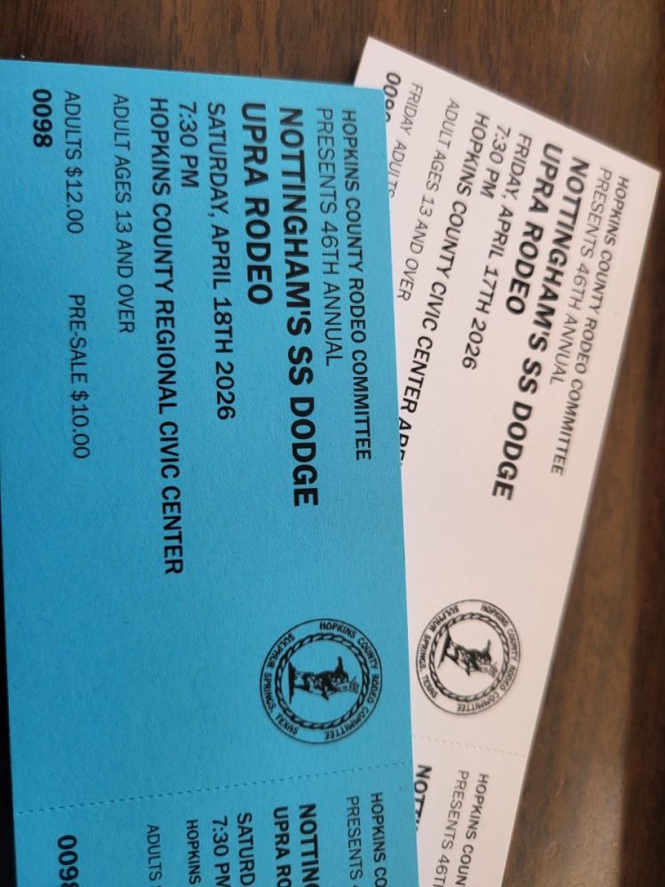 April 16, 2026 – SULPHUR SPRINGS, TX — Excitement is building in Hopkins County as the community prepares to host the 46th annual Nottingham’s SS Dodge UPRA Rodeo later this month. The long-running event, organized by the Hopkins County Rodeo Committee, will take place at the Hopkins County Regional Civic Center Arena over two nights.